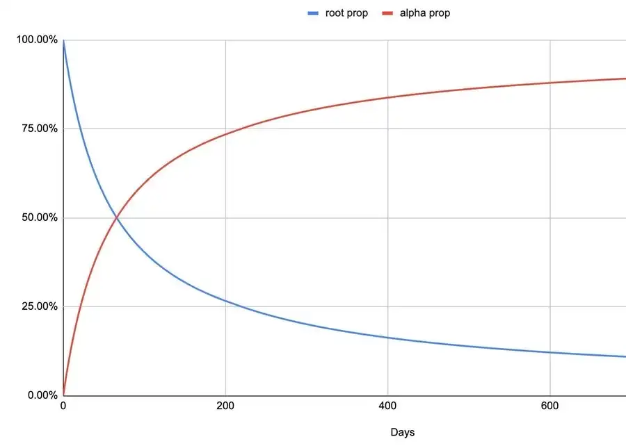 Bittensor 仍处于释放机制的过渡期,控制权正在从旧机制(SN0 或「root prop」)逐步转移到新机制(dTAO 或「alpha prop」)。