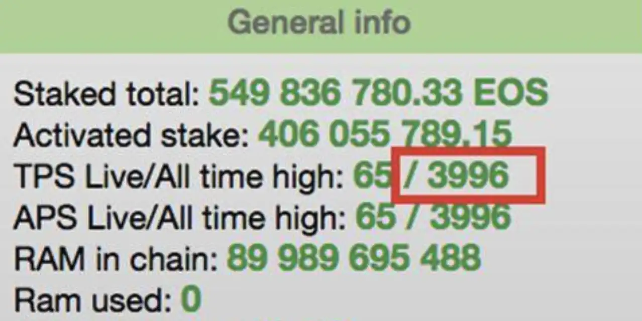 但是,EOS 主链已经启动 4 个月后,最高 TPS 仅为 3996,这跟当初宣传的百万相距甚远。