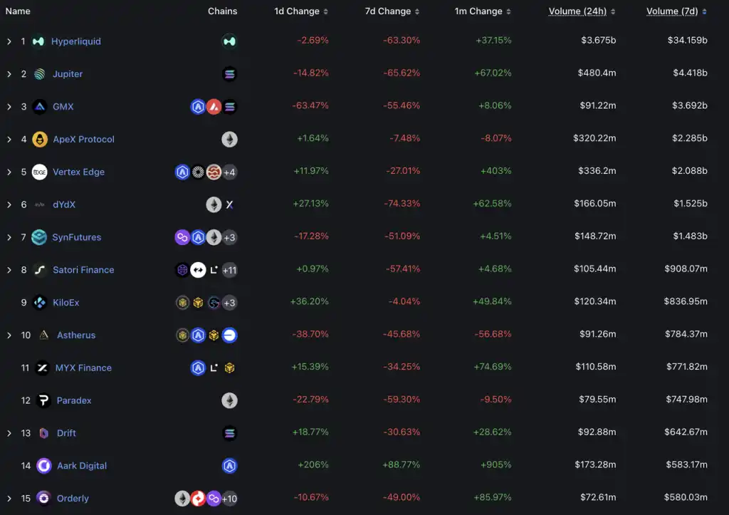 7 日衍生品交易所交易量排名 来源:DeFillama