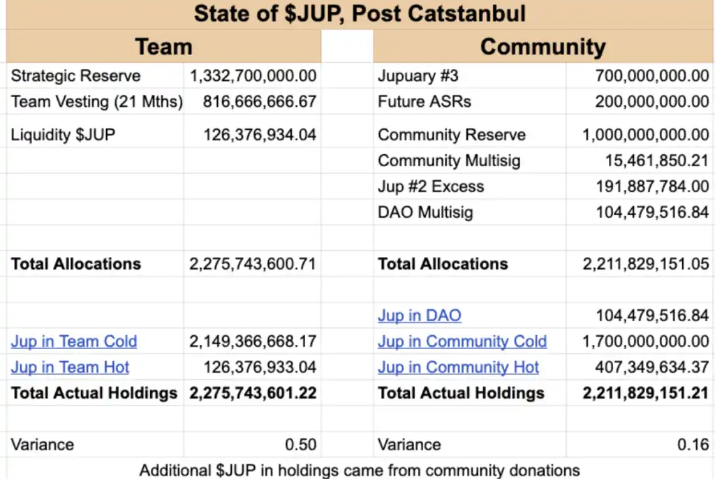JUP 代币当前分布情况 来源:Jupiter 治理论坛