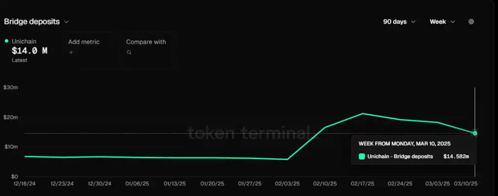 而 Unichain 的已桥接资产价值仍然不高,目前仅有 1400 万美金左右。