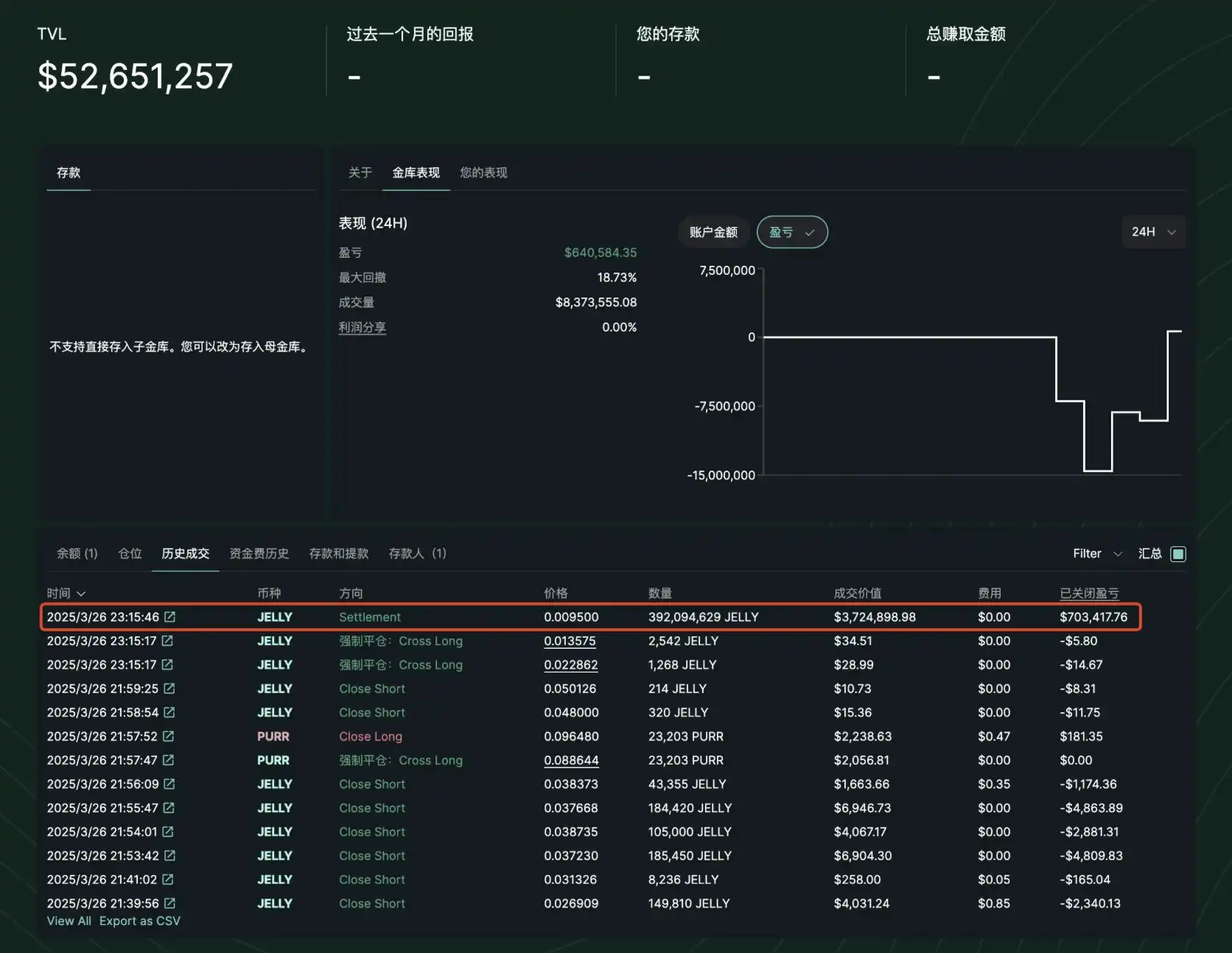 事件梳理:Hyperliquid 金库接管 JELLY 空单,从濒临爆仓到「强行」无损平仓