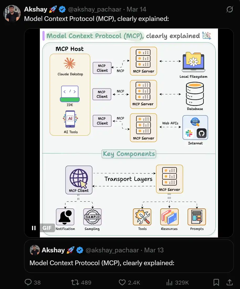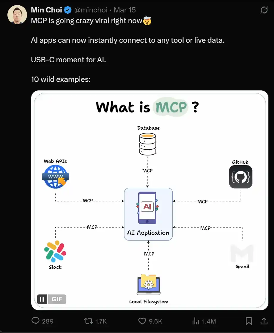 但自从 @anthropicai 推出了这一通信标准后,越来越多的 AI 解决方案开始将其作为默认方式。简单来说,它就是「AI 实时与软件交互的方式」。