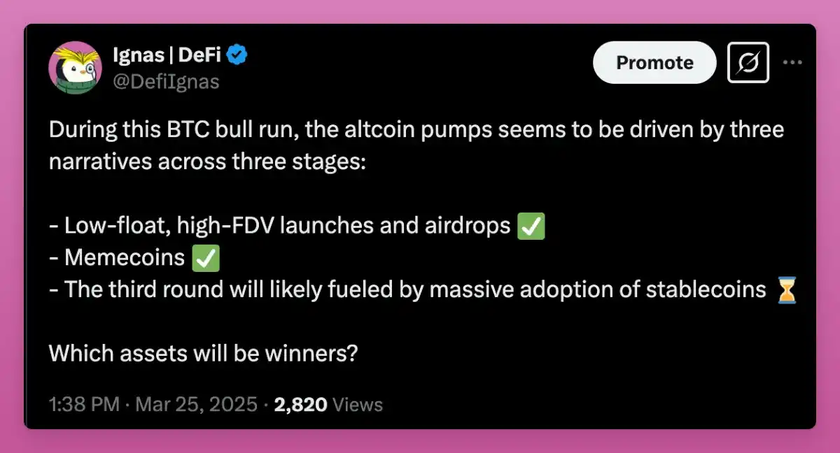 现在许多人相信,下一轮山寨币上涨将受到机构采用率提高的推动,尤其是稳定币。