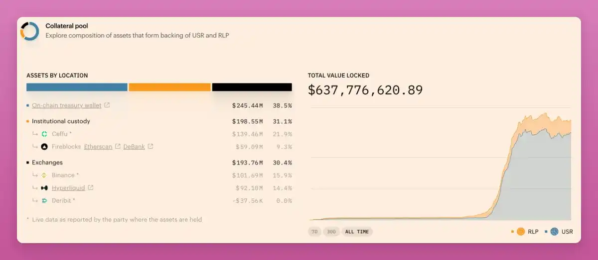 这种设置可以让风险承受能力强的用户获得更多收益,同时保护稳定币用户免受市场风险的影响。截至撰写本文时,USR 的 APR 为 4.3%,RLP 为 6.7%。