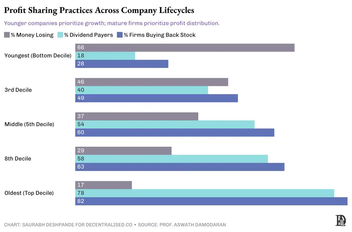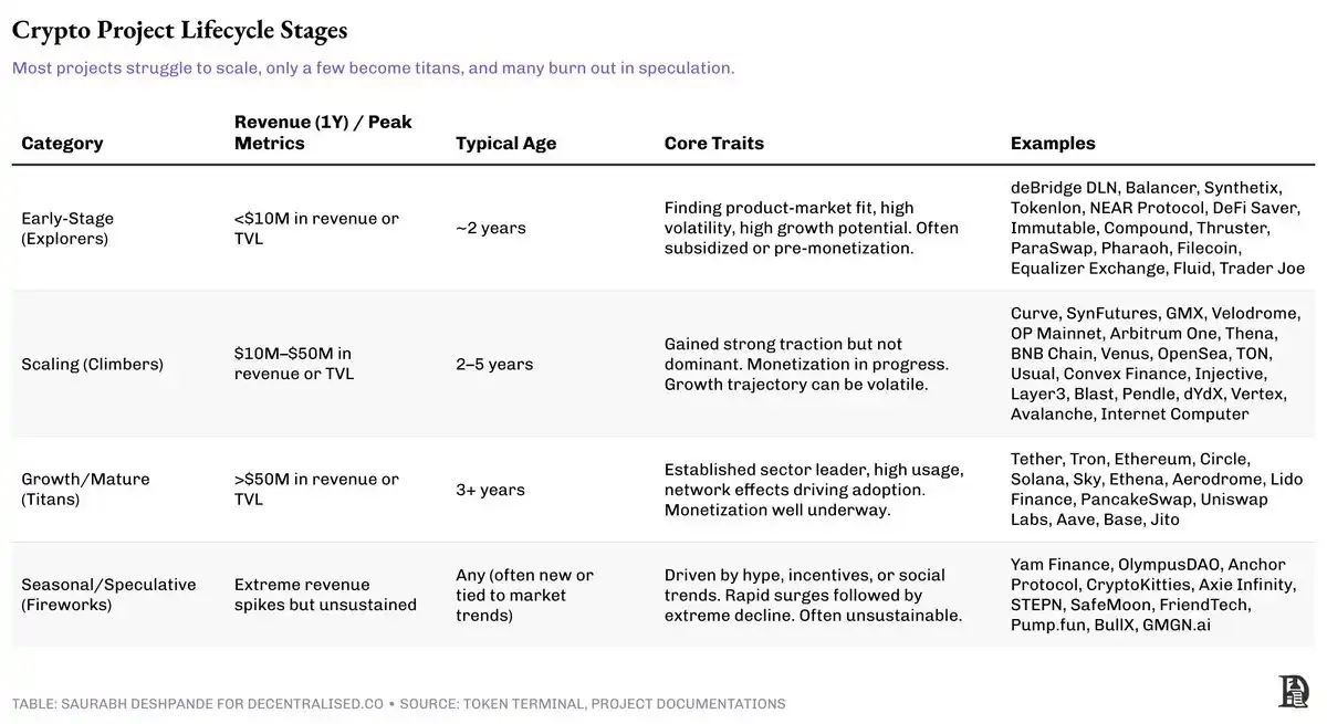 就像传统公司一样,加密项目也有不同的成长阶段。在不同阶段,项目对收入的态度——是再投资还是分配收益——都会发生显著变化。