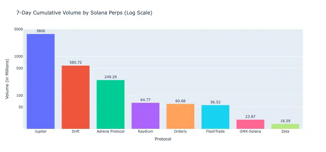 目前,Solana 永续合约的交易量由 Jupiter 领先,其次是 Drift。GMX-Solana 在挑战市场现有竞争者方面还有很长的路要走。