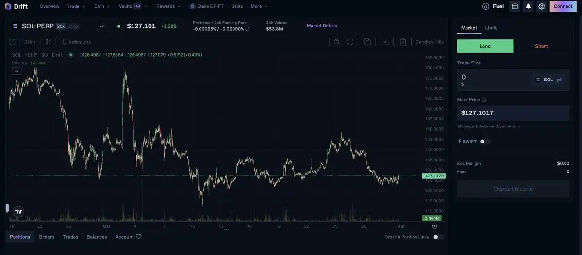 Drift 提供最高 20 倍杠杆的交易,同时支持流动性提供、现货交易以及借贷市场。