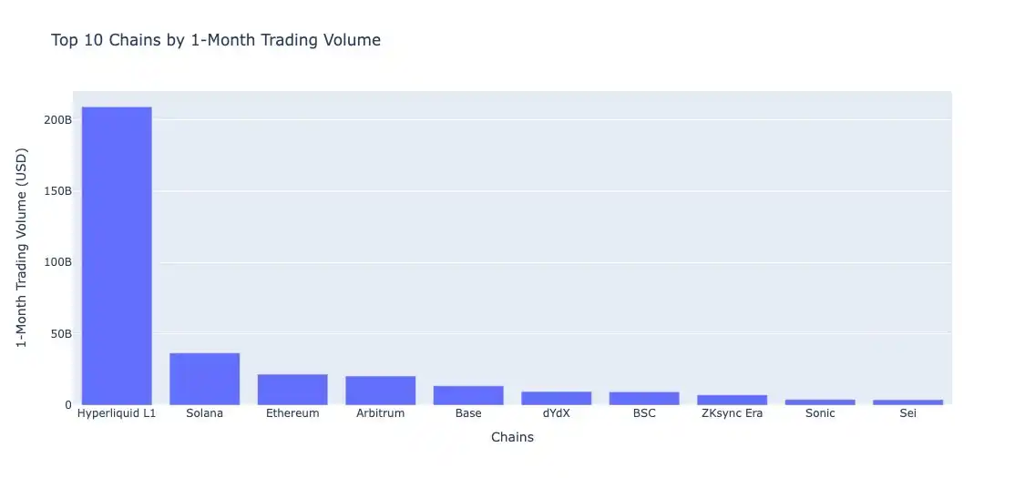Solana 是链上衍生品领域交易量第二大的链。Hyperliquid 的交易量与其他链相比差距巨大。随着行业的发展,随着 Solana 协议引入更好的功能和激励措施,这个差距最终会缩小。通过 Firedancer 验证客户端提高的吞吐量,Solana 协议可以达到与竞争对手相媲美的速度和效率。