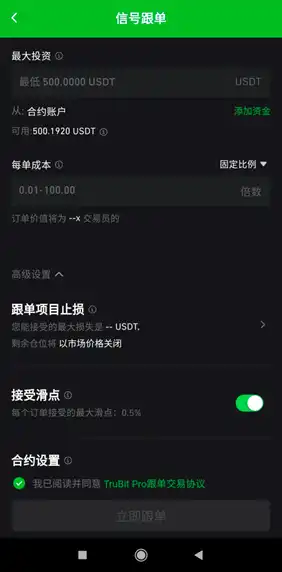 TruBit Pro 信号跟单使用界面