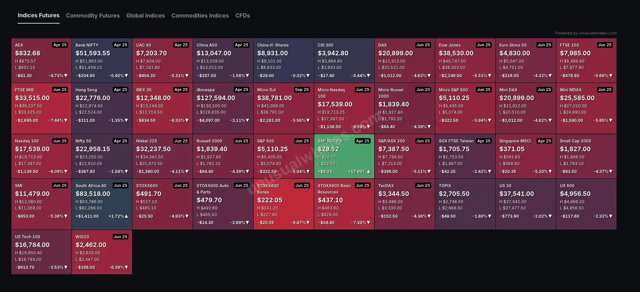 有专业人士指出纳斯达克 100 指数期货下跌 6.07%,S&P 500 指数期货下跌 5.97%,如果这一情况属实,那么这将是自 1987 年「黑色星期一」以来市场表现最糟糕的三天,甚至新冠疫情时期都没有如此糟糕。