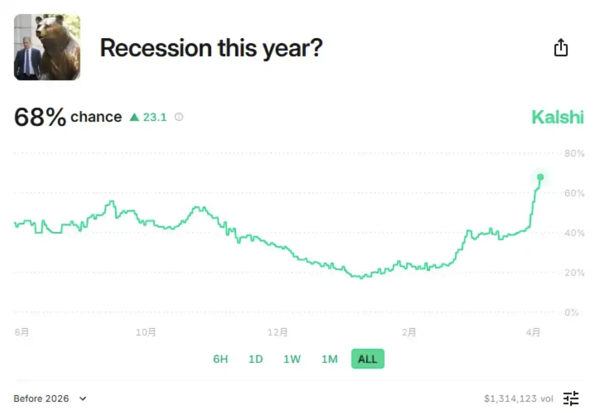 4 月 7 日,特朗普长子小唐纳德·特朗普担任战略顾问的预测市场 Kalshi 预测,2025 年美国经济衰退的可能性已激增至 68%,达到数月来的最高水平。摩根大通显然也有同样的担忧,据 Watcherguru 报道摩根大通对美联储喊话,必须在下次会议之前降息。