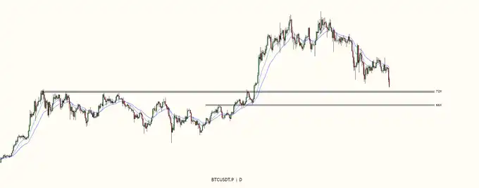 最近一直持看跌的想法,两天前说的 72K-66K 准备要到了,届时看一下反弹的情况,决定是否进多单。