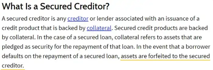 这就是为什么存在有担保债权人(银行或经纪商)。当危机爆发时,他们的清偿优先级高于你!