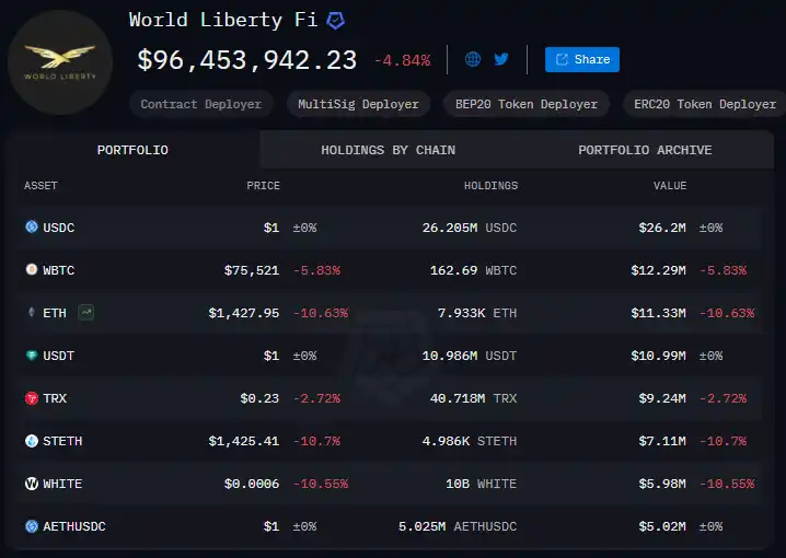 特朗普家族项目WLFI抛售ETH亏损千万,其手中还有多少筹码?