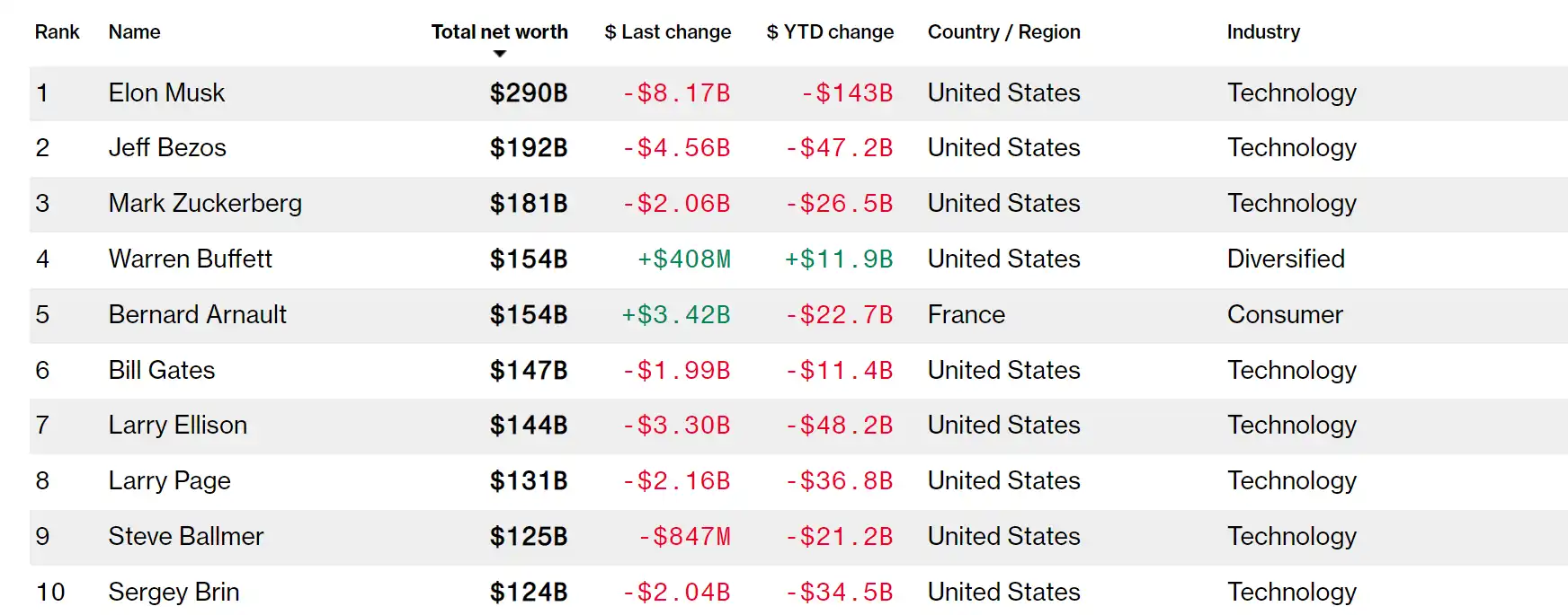 尽管经历了两天的暴跌,但并非所有亿万富翁的净资产都出现了缩水。巴菲特,这位精明的投资公司伯克希尔哈撒韦公司的董事长兼最大股东,今年的财富已增至 1540 亿美元。在为期两天的股市崩盘中,他的财富确实损失了 25.7 亿美元,但今年迄今为止,他的净资产已增加 119 亿美元。