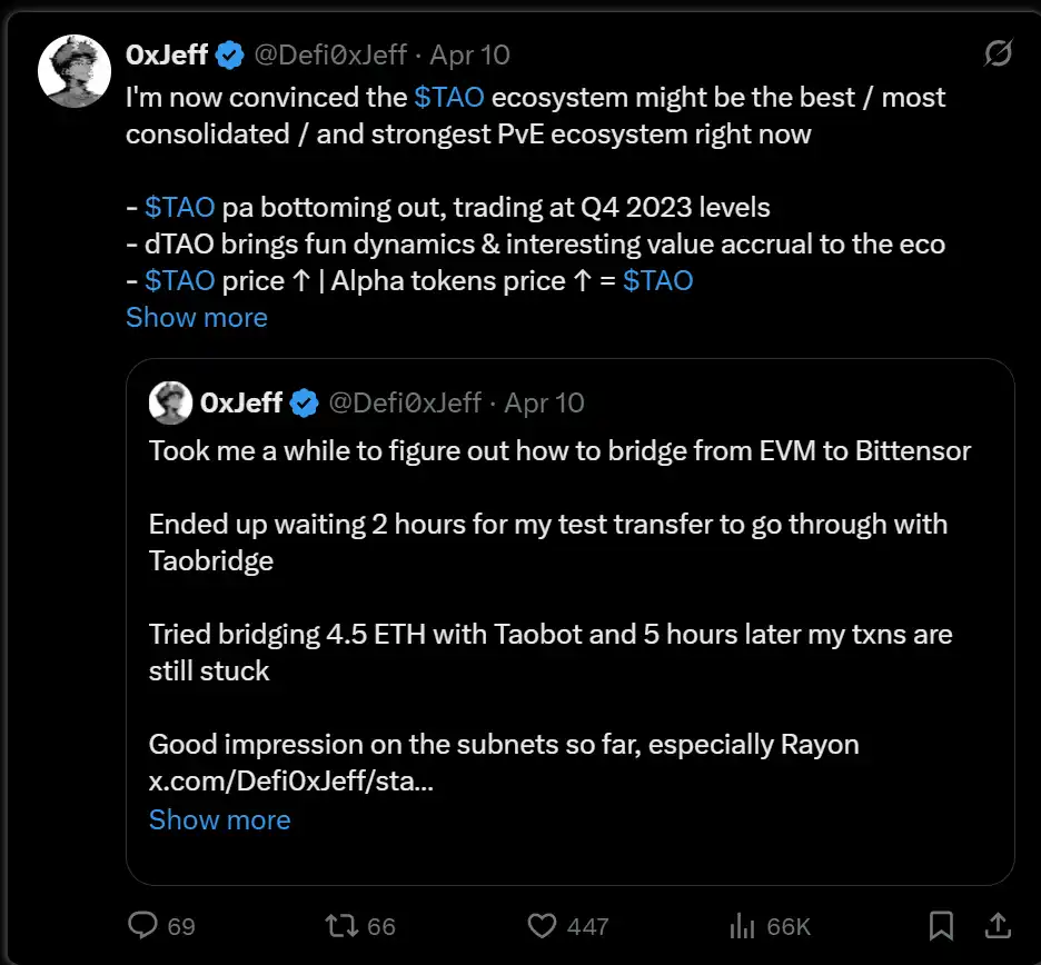 像 @AskBillyBets 和 @thedkingdao 这样的智能体,已经成为展示 Bittensor 子网能力的代表,把很酷的技术带入大众视野。