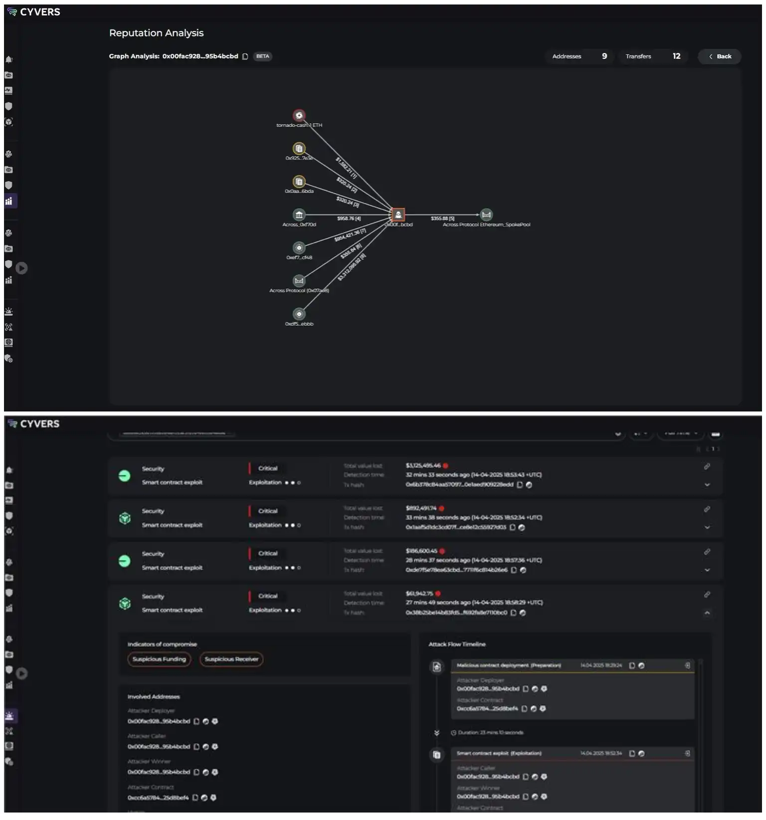 Cyvers Alerts 表示攻击者所得 USDC 或面临冻结,并呼吁 Tether 主动冻结攻击者所获 USDT 资产。目前,攻击者已将资金通过 Across 跨链存至 0x00FAC92881556A90FDB19EE9F23640B95B4BCBD 这一地址中。