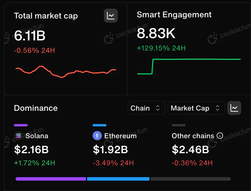 虽然整体市场仍存在不确定性,但关税暂停 90 天后,市场感受到了一些缓解。总市值较上周增长约 25%,但更有趣的是智能互动的增长,从上周的 3420 次跃升至现在的 8830 次以上,这表明越来越多的用户开始关注 AI 项目,我们可能正在触底。