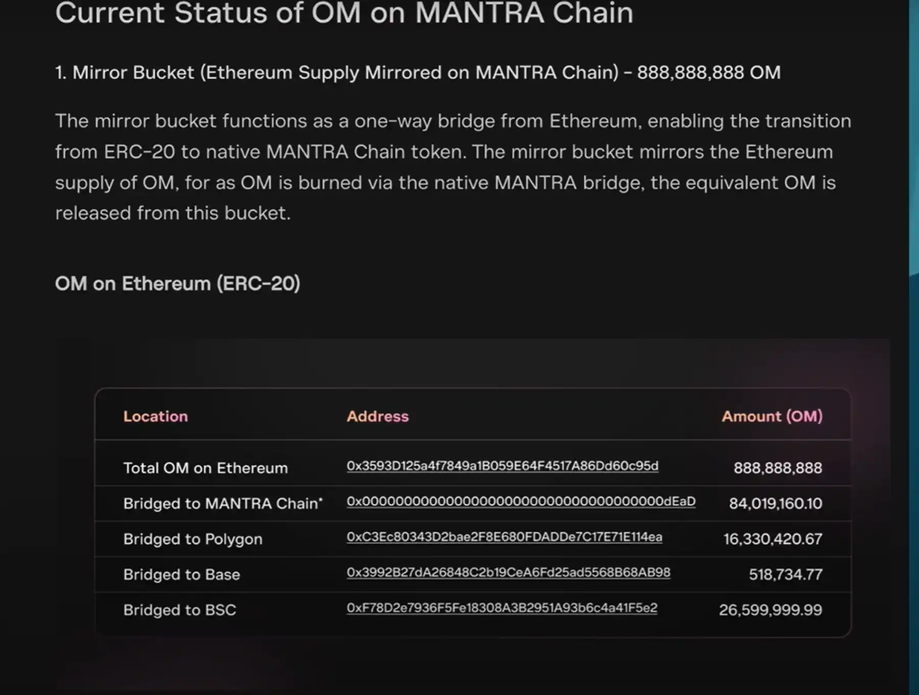 正如你提到的,在 Mantra 的历史中,我们一直在发布关于 OM 代币发行和供应的更新。这些都是从去年开始,当我们将 ERC 代币和新链代币合并时,经过了治理投票和 ERC20Mantra 社区的批准,整个过程都得到了验证。过去几个月里,我们也不断发布了更新,虽然现在没有这些链接,但我很乐意提供。