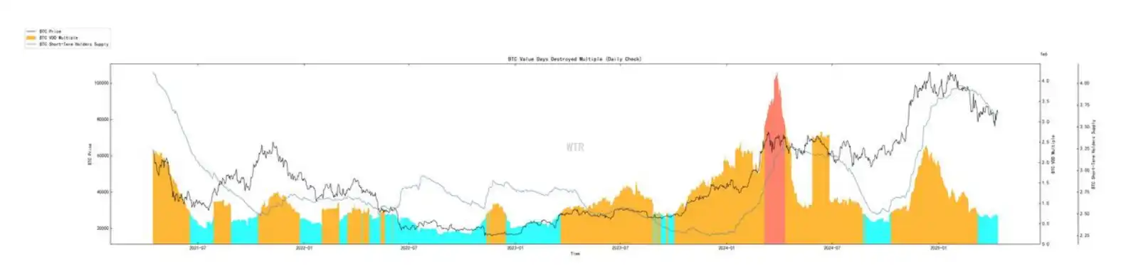 2. ⻓期持有者基础虽显稳定,但供应⽼化速度放缓且短期持有者占⽐较⾼,市场进⼊结构性调整期;