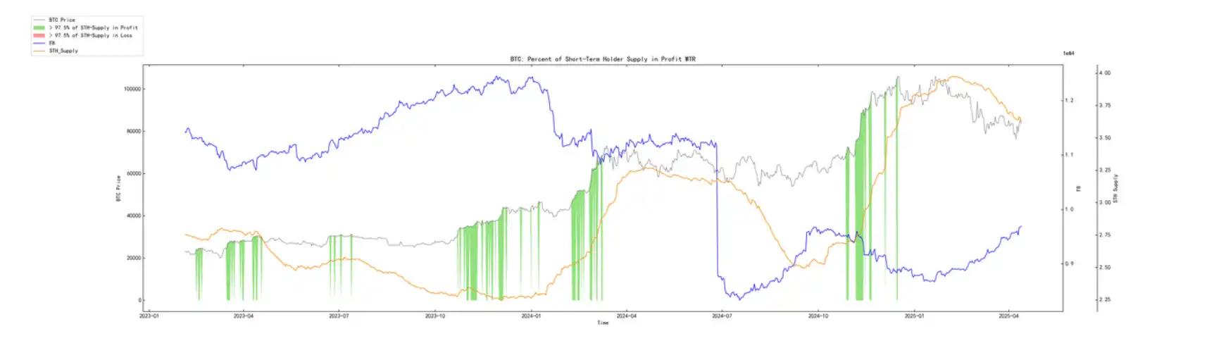 短期的盈利结构仍相对健康,尚未出现存量环境中过度盈利的表征(即绿⾊抛压区)。可能⽬前的参与者问题出在整体性的积极和消极状态切换中。相对中性,紧绷的宏观环境也在不断地市场参与者的选择边界。