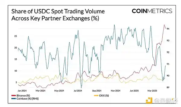 · USDC 在主要交易平台的使用量持续增长,目前占 Binance 现货交易量的 29%,这得益于 Circle 的战略合作伙伴关系。