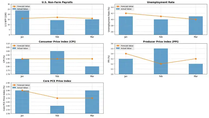 3 月份,宏观经济数据整体改善,市场情绪有所回暖,但核心 PCE 的超预期表现再次引发波动。3 月 7 日,2 月季调后非农就业人口数据公布为 15.1 万,略低于预期的 16 万;同日公布的 2 月失业率为 4.1%,高于预期的 4.0%,显示就业市场略有疲软。3 月 12 日,2 月未季调 CPI 年率公布为 2.8%,低于预期的 2.9%;3 月 13 日,2 月 PPI 年率公布为 3.2%,略低于预期的 3.3%。