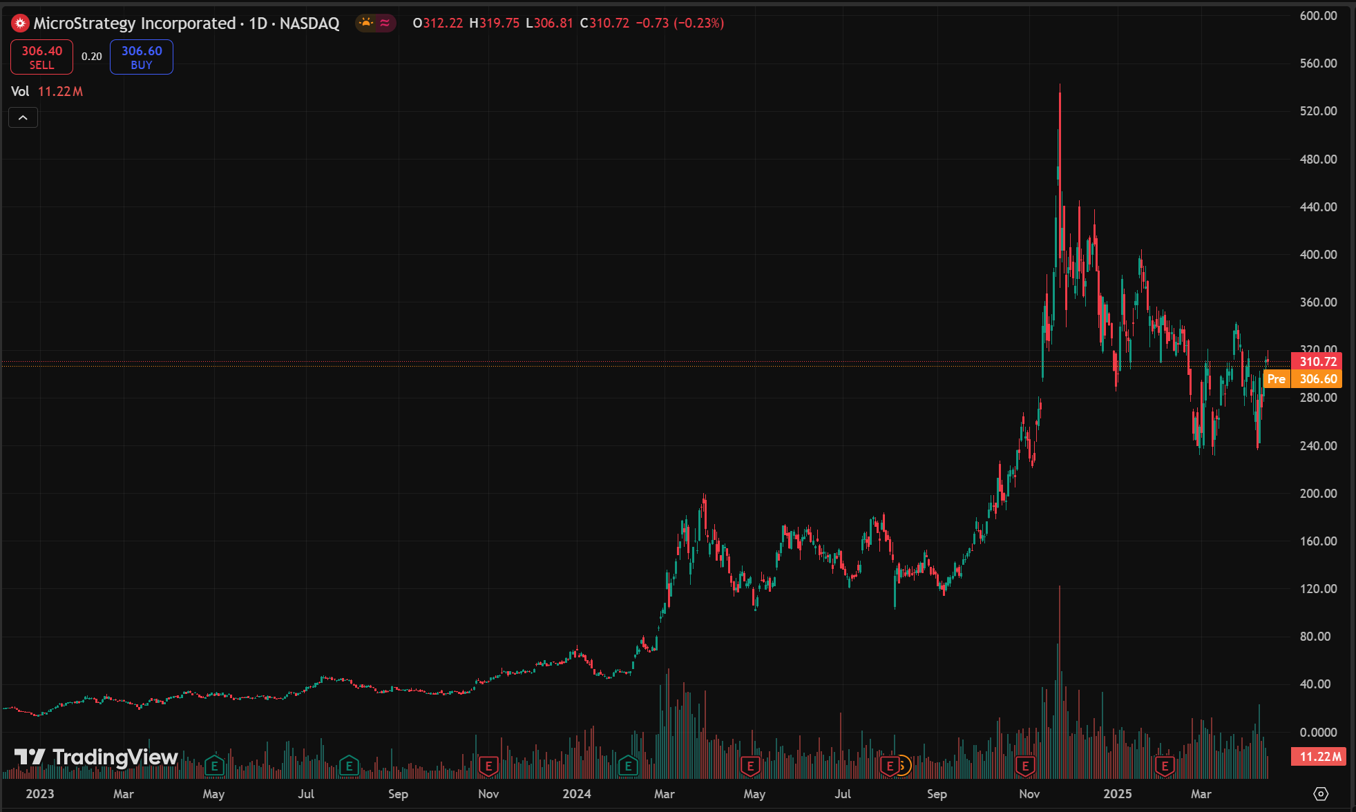 截至 2025 年 4 月,公司共持有 528,185 枚 BTC,持仓成本约 331.4 亿美元,平均买入价为 66,385 美元,以比特币当前价约 81,400 美元计算,总市值约 430 亿美元,占全球流通量的 2.5% 以上。