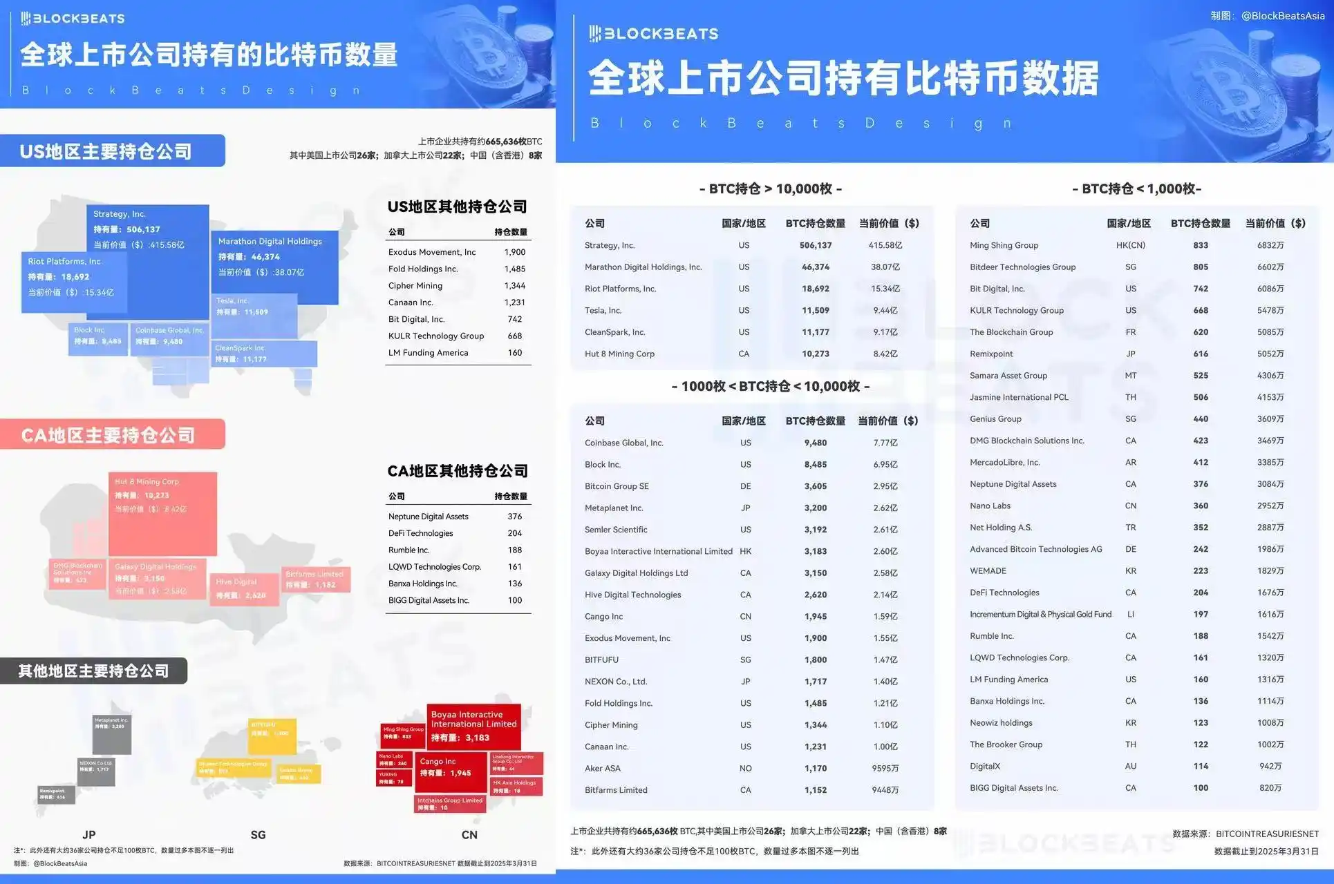 根据 Bitcointreasuries 的数据,截至 2025 年 4 月 16 日,共有 178 个主体合计持有超过 316 万个 BTC,其中上市公司持有约 665,636 个 BTC,且这一数字还在快速增长。这股「微」风潮席卷全球,涉及 26 家美国上市公司、22 家加拿大上市公司以及 8 家中国(含香港)上市公司,不乏一些原本市值低迷、鲜少被关注的边缘企业。
