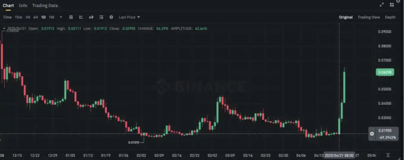代币总发行量 10 亿枚,发行于 2024 年 12 月,全流通代币,流通市值为 7685 万美元。