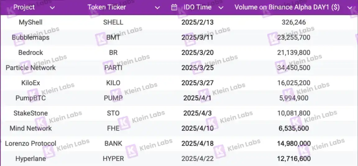 然而,这种模式是否真正适合每一个项目?哪些项目可以通过它快速放大叙事、完成冷启动,哪些项目又可能在市场喧嚣之后遭遇「高开低走」的困境?Klein Labs Research 团队对已上线的 10 个 Binance Wallet IDO 项目进行了系统的数据研究和结构化拆解,试图帮助项目方从战略视角做出更聪明的判断。