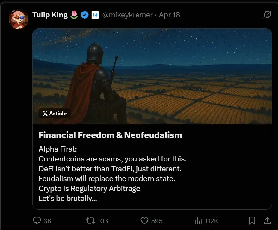 Mikey Kremer 精妙地总结了加密货币在数字世界中的重要性: