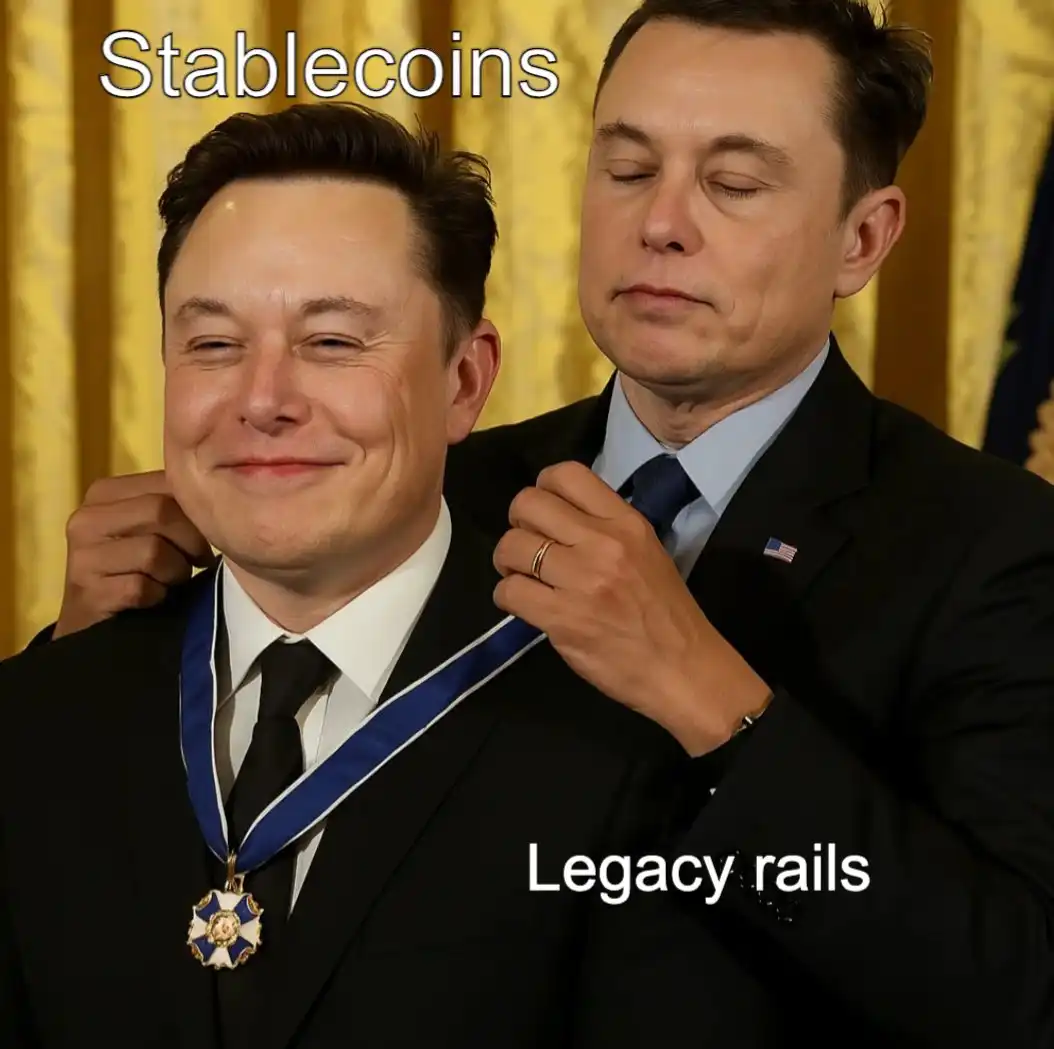 在这样的「理想乌托邦」中,稳定币彻底胜利了。这不只是货币形态的变革,更是一个去中心、跨国界、实时可编程的金融基础设施全面取代旧金融系统的图景。