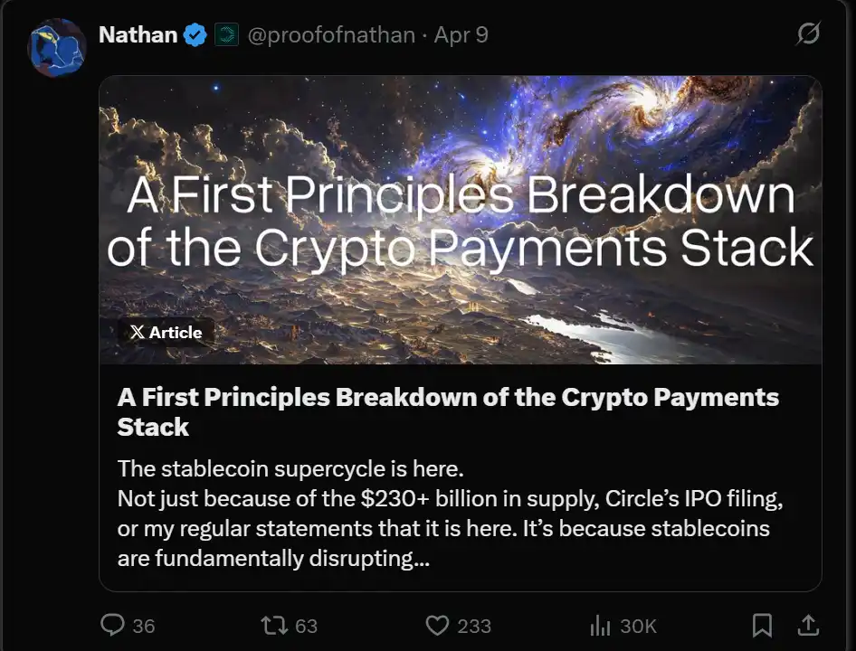我曾长期思考并撰写关于「稳定币为基础的支付网络」未来堆栈结构将如何构建。