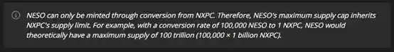 NESO 只能通过 NXPC 兑换铸造,由于兑换率固定,$NESO 的理论最大供应量和 $NXPC 相同