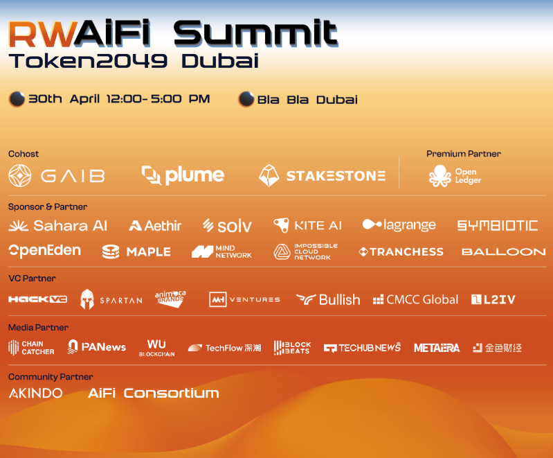 RWAiFi Summit Dubai开幕在即|GAIB、Plume、StakeStone共话AI x RWA x DeFi新纪元