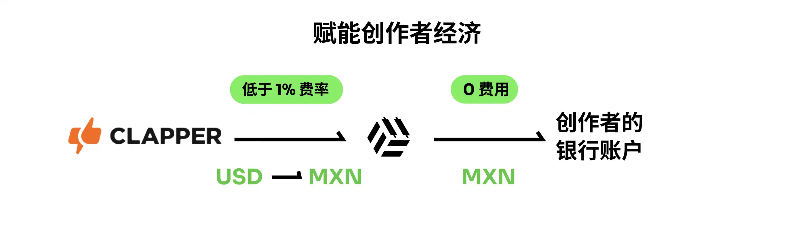 企业批量薪资的创新模式也同样适用于数字经济。Clapper 是一家总部位于美国的社交平台,在墨西哥拥有庞大的内容创作者用户群。该平台在向内容创作者支付报酬时曾面临诸多问题:支付延迟 4 至 6 天、费用高达 30%、资金到账后再转入本地银行还需额外收费。