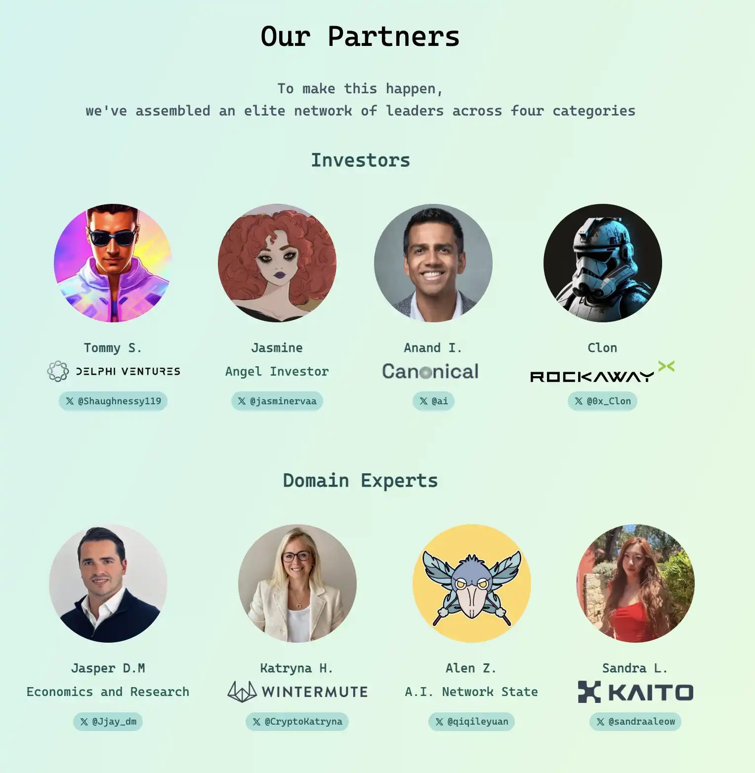 首先,Virtuals 完善了自己的项目方建设生态,发布了 VPN 计划「Virtuals Partners Network」,从一开始 Virtuals 的计划就是将更多的 AI 人从引入 Crypto,而该计划将多个生态位置相连接,包括投资人、各个领域专家、学者和开发者,几乎是只要你有一个想法,从投资人到做市商、市场营销甚至专业人才都可以从这个计划中获取资源。「一条龙服务式」的孵化器,可以说对任何想要进入 Crypto 的人才跟 Virtuals 合作是最佳选择。