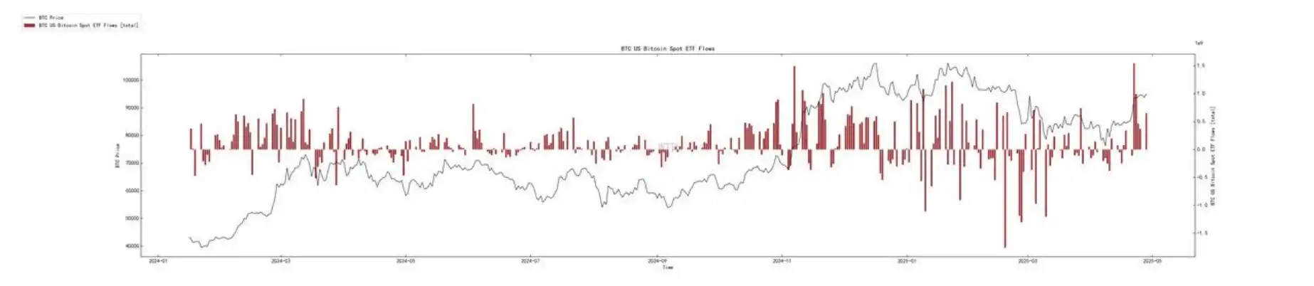 来⾃美国现货 ETF 这⼀关键合规渠道的新增购买需求不仅回归,⽽且保持着相当的强度和持续性。这股⼒量直接、持续地从市场上吸收 BTC 供应,是当前市场重要的增量买⽅来源,有⼒地⽀撑着价格。
