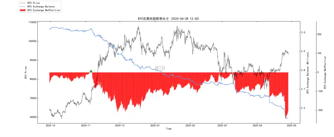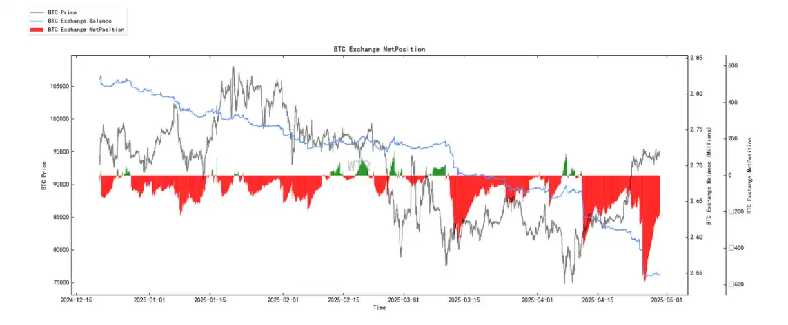 交易平台内部,此前有⼤量 BTC 流出积累现象,当前有所放缓。但截⾄⽬前并未表现出流⼊积蓄潜在抛压的结构性变动,可能市场尚且处于调整的安全边界中。