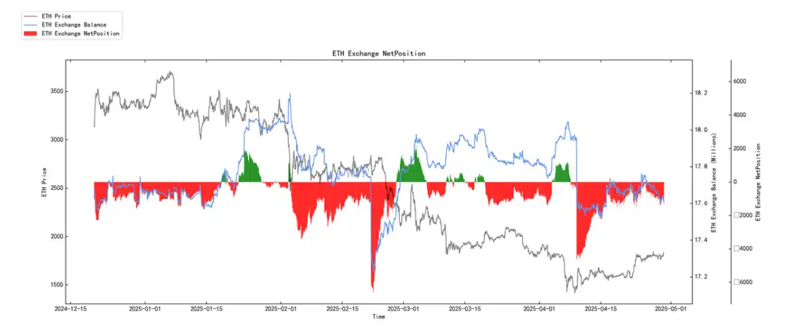 4. 交易平台净头⼨整体呈现 BTC 持续⼤量流出,ETH 仅有少量流出。