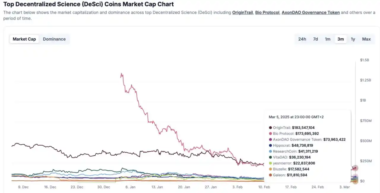 DeSci 相关代币的市值排名, 来源: Coingecko