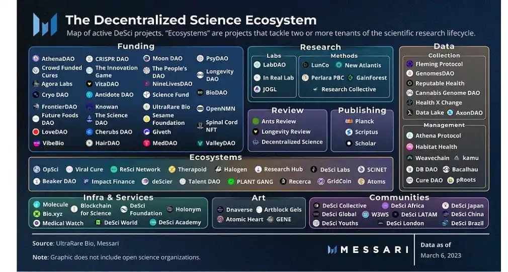 DeSci 生态项目图谱,来源:Messari Research
