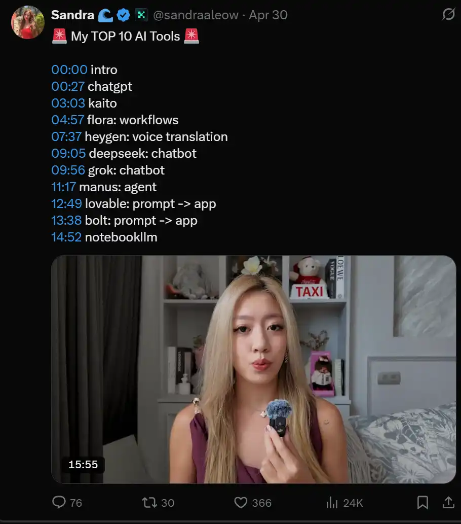 @sandraaleow 排名前 10 位的 AI 工具 :