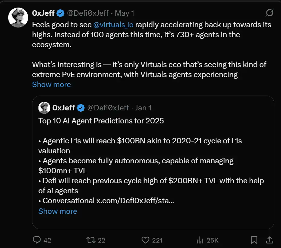 在 Virgen 积分和 Genesis 发布之后,Virtuals 生态系统似乎找到了新的反应,启动了其生态系统中的飞轮效应。