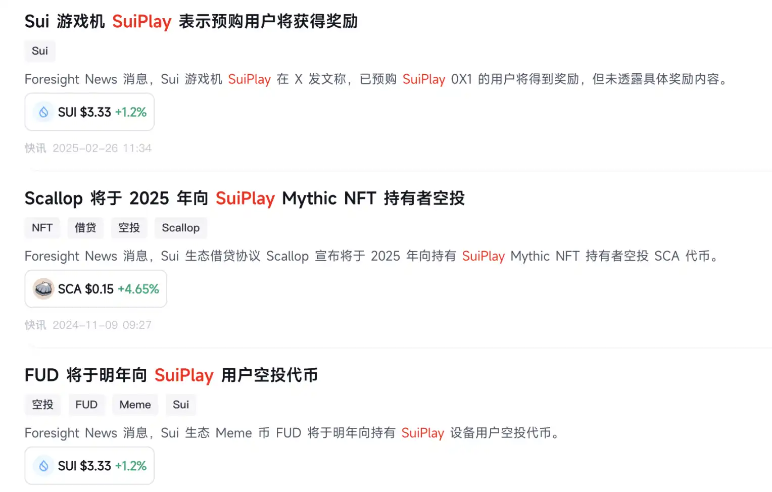 硬件咱们都有了,你有的空投我也不能少!发售至今,SuiPlay 已累积收到超 10 个生态项目的空投或空投承诺。