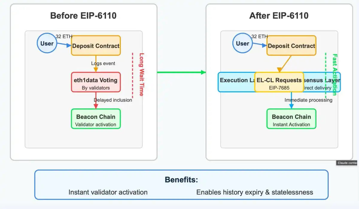 该提案允许验证者的存款直接包含在区块中,从而加快质押过程,并减少新验证者的等待时间。
