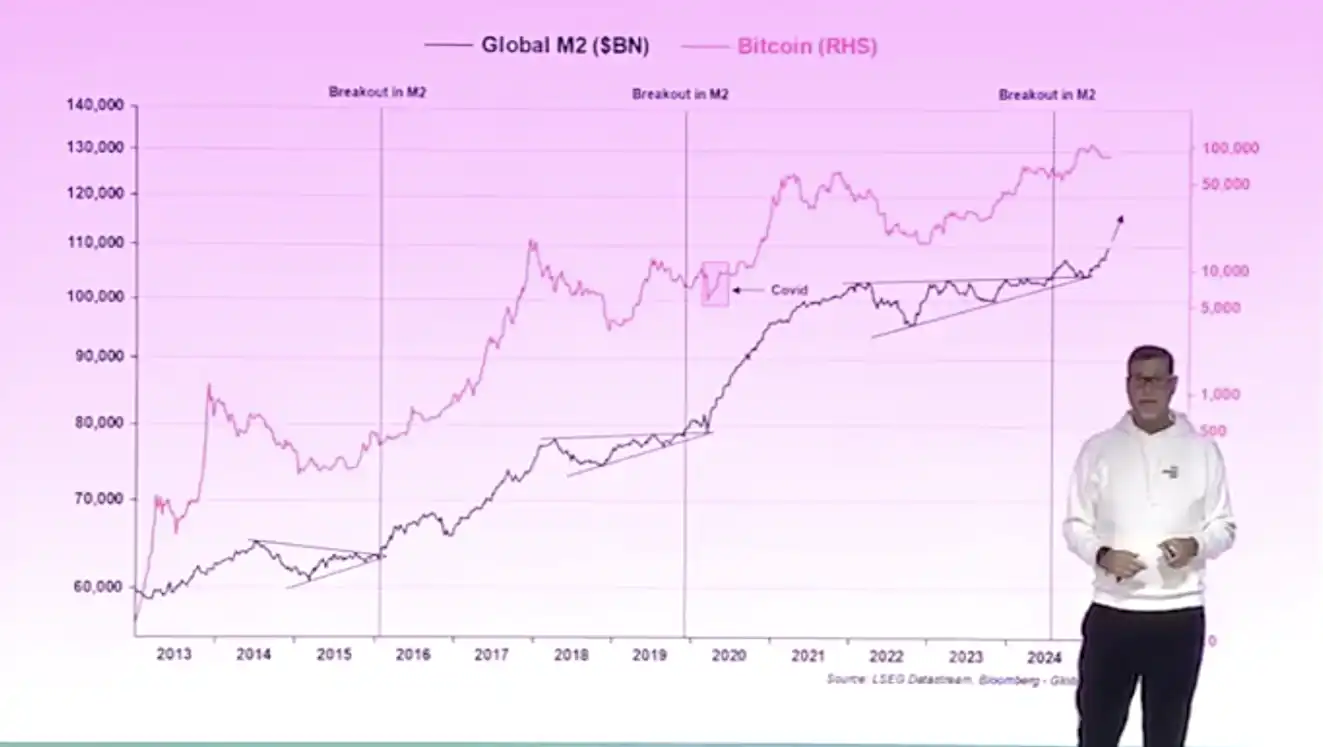 3、流动性驱动一切:美联储净流动性是核心指标。2009 - 2014 年主要依靠资产负债表扩张来提供流动性,之后新增了如银行准备金调节等工具。当下,总流动性(包含 M2)至关重要,它与比特币(90% 相关性)和纳斯达克(97% 相关性)的走势具有惊人的解释力。