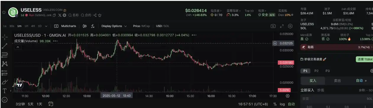 因 Letsbonk.fun 平台知名大 V@theunipcs(Bonkguy)喊单支持而受到平台创始人 @Solporttom 关注,主打「无用之用,方为 Meme 之用」。据 GMGN 平台信息,Useless 代币信息如下: